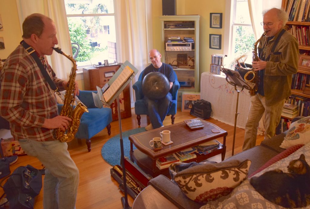 To bring these pieces to life, I decided to enlist my Tumble bandmate Randy McKean as well as multi-reeds player Dan Plonsey. I have played music with Randy in Tumble over the past decade, but since he never plays alto in Tumble, I thought the dominant presence of alto saxes might help to differentiate the sound from the familiar sound of mbira and reeds in Tumble.